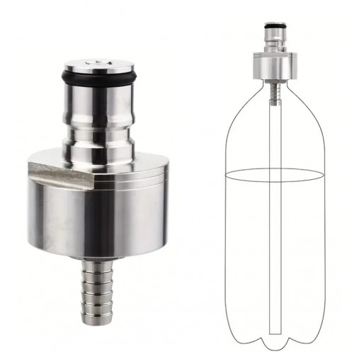 Fits a regular PET soda bottle and is used to make either soda water or force carbonate beer. Transforms a PET bottle into a mini keg. Made of high quality 304 stainless steel.